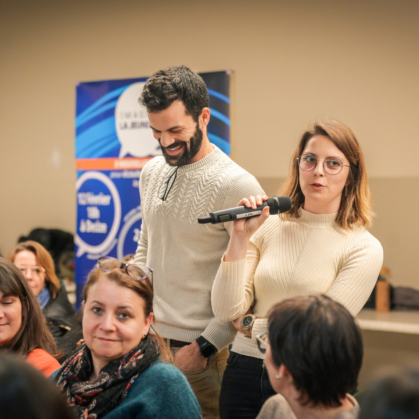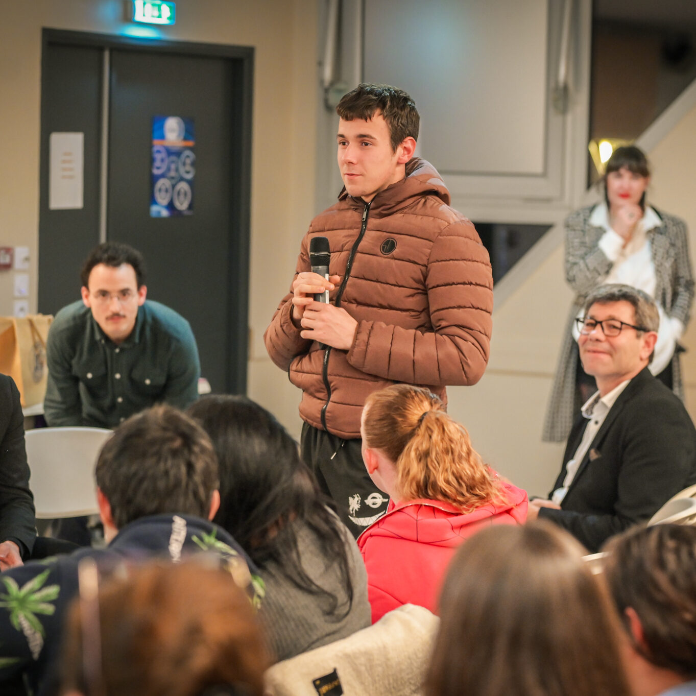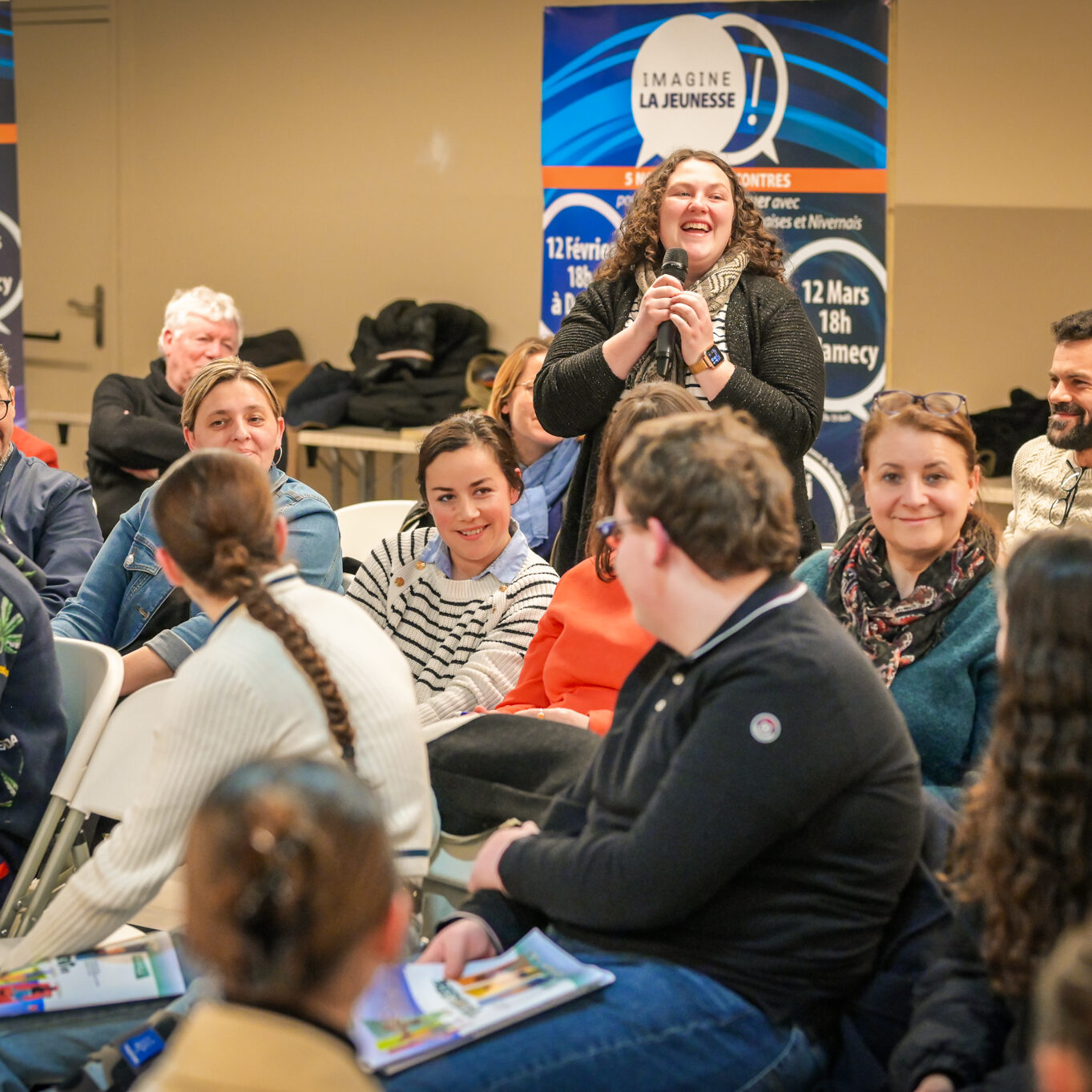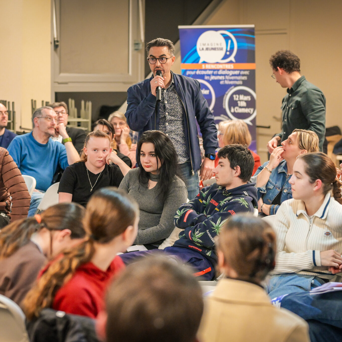 « Une salle qui est remplie de jeunes, c’est assez rare pour être souligné », souligne en préambule Justine Guyot, maire de Decize et vice-présidente du Conseil départemental, qui lève les timidités de l’auditoire en témoignant de son parcours : « J’ai eu mon premier mandat électif à 26 ans, ça prouve qu’il faut croire en la force de sa jeunesse. À Decize, on est très attachés à ces échanges citoyens, au contact direct avec les habitants. On ne peut plus penser les politiques publiques autrement qu’avec les jeunes, et pour les jeunes. »