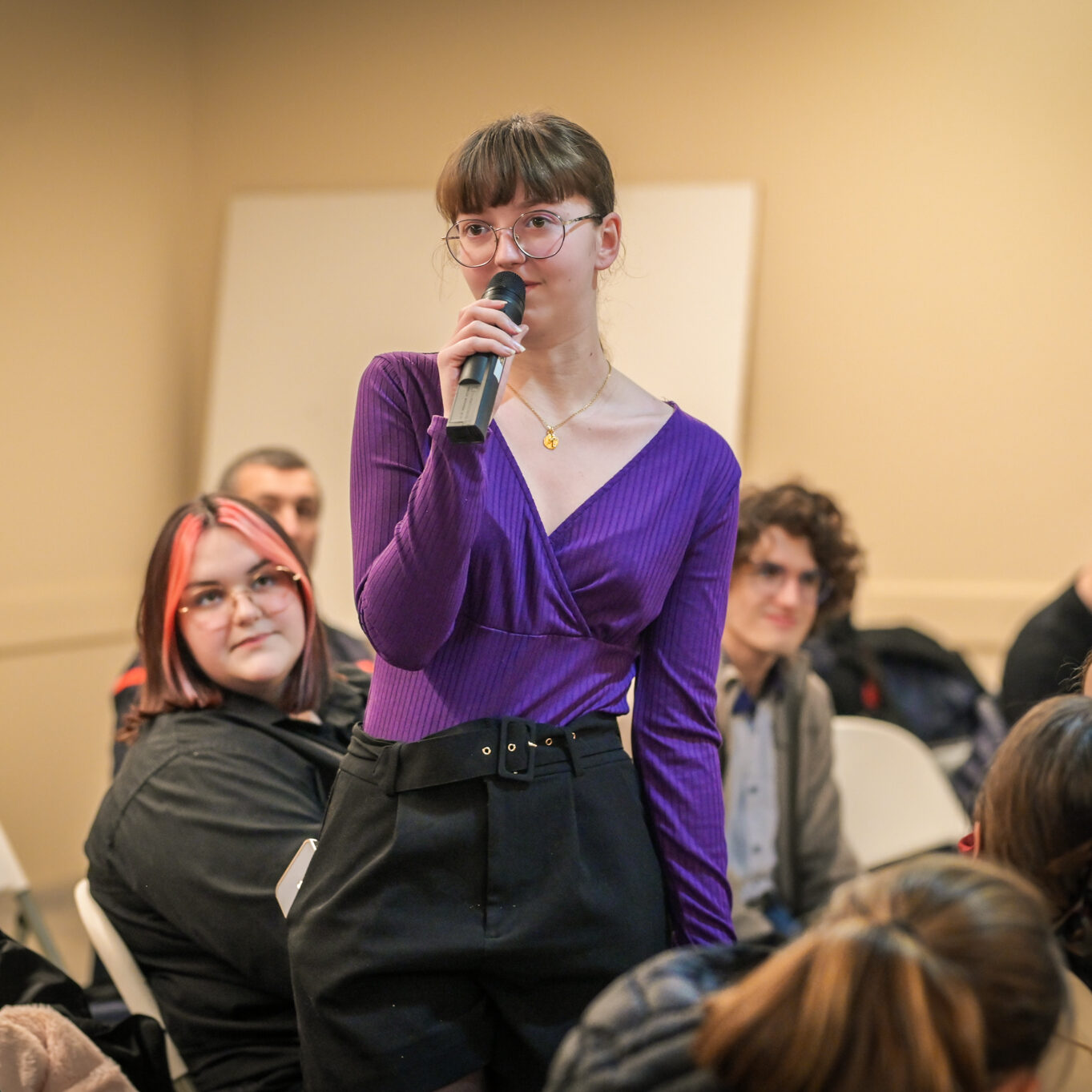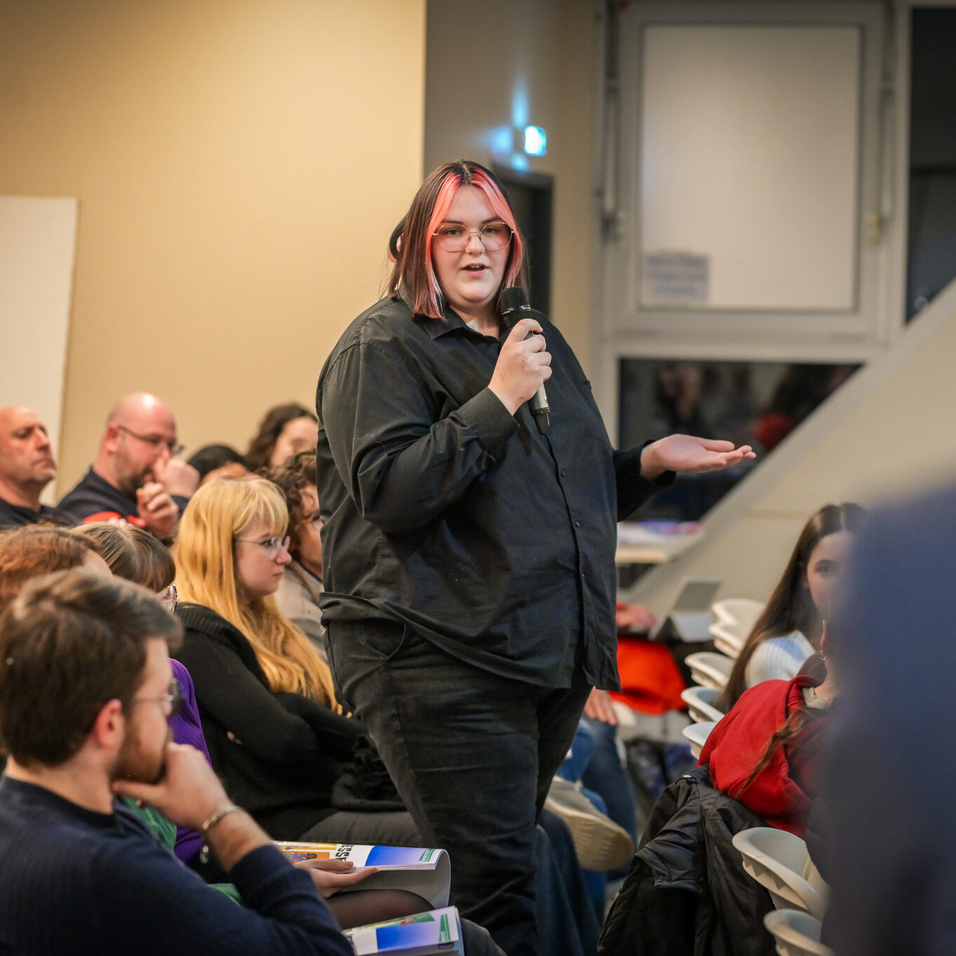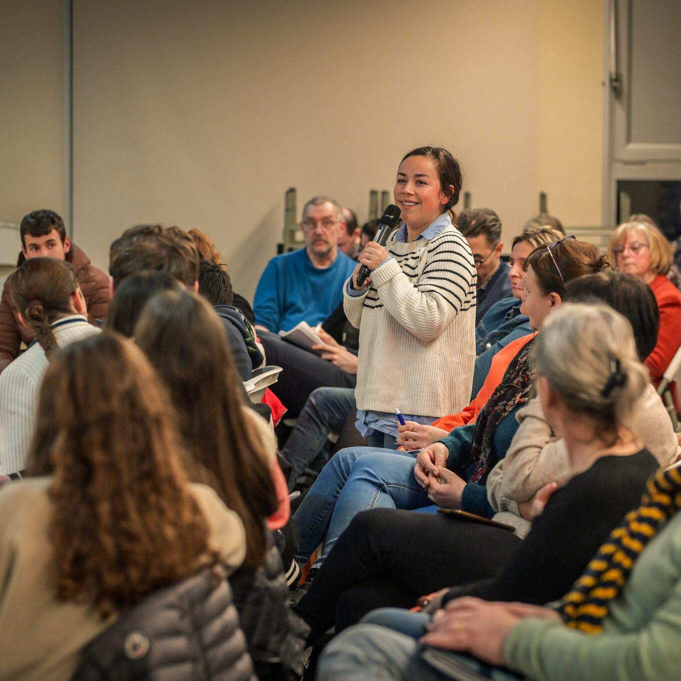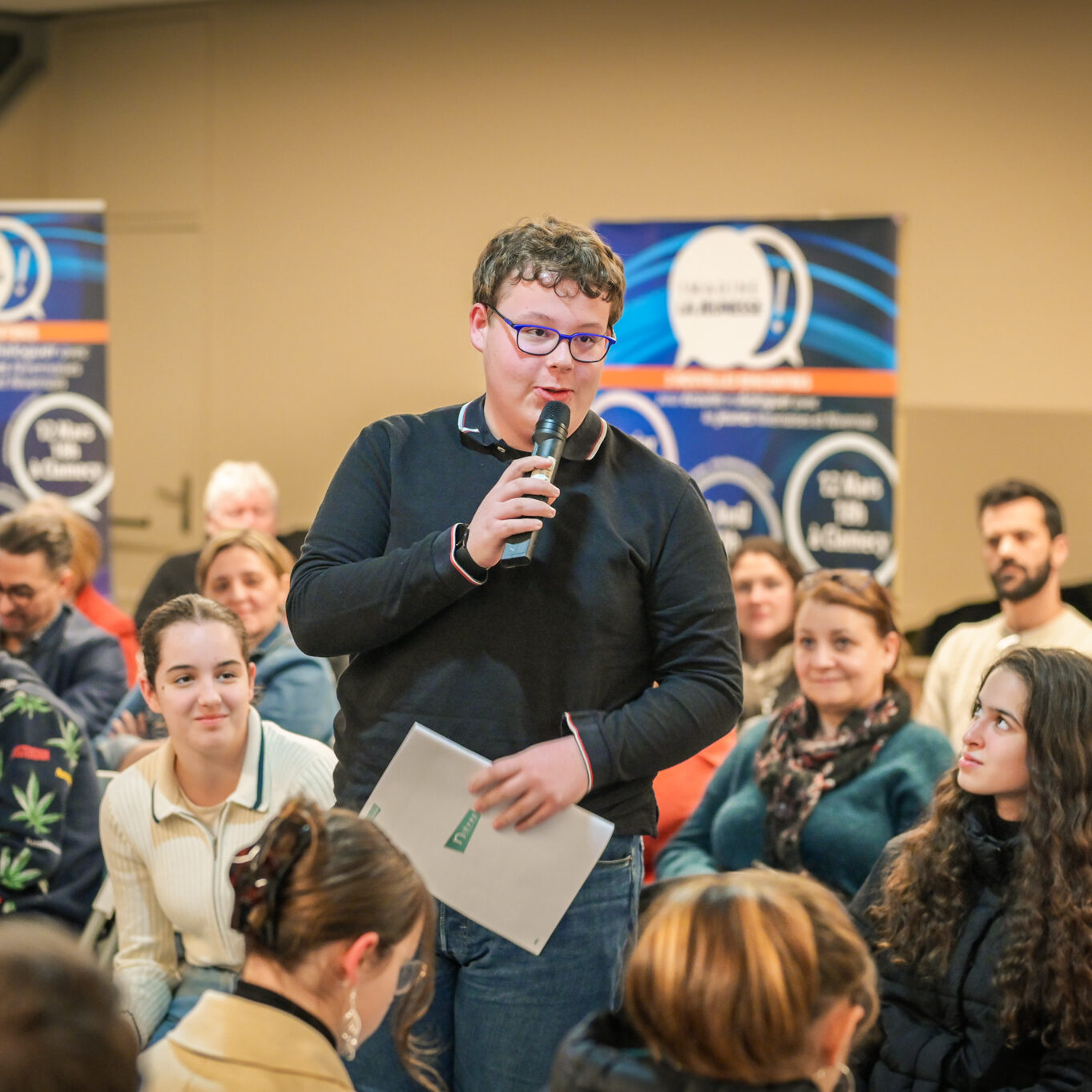 « Une salle qui est remplie de jeunes, c’est assez rare pour être souligné », souligne en préambule Justine Guyot, maire de Decize et vice-présidente du Conseil départemental, qui lève les timidités de l’auditoire en témoignant de son parcours : « J’ai eu mon premier mandat électif à 26 ans, ça prouve qu’il faut croire en la force de sa jeunesse. À Decize, on est très attachés à ces échanges citoyens, au contact direct avec les habitants. On ne peut plus penser les politiques publiques autrement qu’avec les jeunes, et pour les jeunes. »