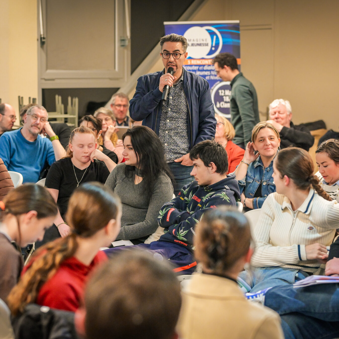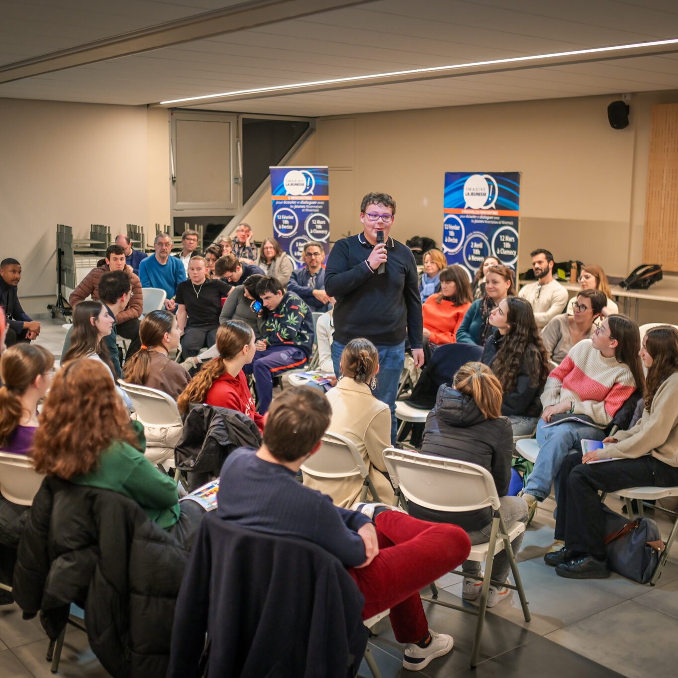 À son tour, Fabien Bazin, président du Conseil départemental, rappelle brièvement la genèse d’Imagine la jeunesse, le prolongement « version jeune » du dialogue citoyen Imagine la Nièvre !, ouvert en 2022 : « On veut vous écouter, vous réécouter jusqu’à la fin du mandat, en 2028. Votre parole est sacrée, car il est rare que l’on demande aux jeunes ce qu’ils veulent, leurs rêves, l’aide dont ils ont besoin. »